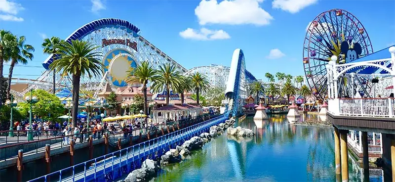 حالا نوبتی هم که باشه نوبت میرسه به دیزنی لند کالیفرنیا. در دیزنی لند هر شخصیت کارتنی که فکرش را بکنید می توانید پیدا کنید. در قلعه دیزنی لند انواع بخش های مختلف وجود دارد که همگی توسط والت دیزنی در سال 1955 ساخته شده است. از جمله ی این آیتم ها می توان به رژه ی خیابانی شخصیت های کارتن های دیزنی، موسیقی های زنده کارتن ها، و انواع ترن هوایی های جذاب اشاره کرد. در دیزنی لند کلی بخش جذاب برای عکسبرداری وجود دارد که می توانید از آن ها استفاده کنید و عکس های به یاد ماندنی ثبت کنید.
